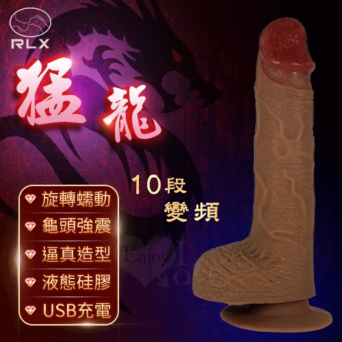 滿2000元贈品 RLX 猛龍 ‧ 10段變頻液態硅膠肉感逼真老二棒﹝旋轉蠕動+龜頭強震+USB充電﹞大