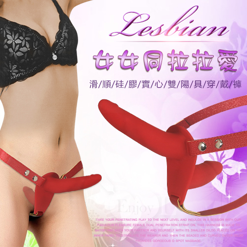 Lesbian 女女同樂拉拉愛 滑順硅膠實心舒適雙陽具穿戴皮褲﹝紅色﹞可拆卸皮褲品號:NO.512065