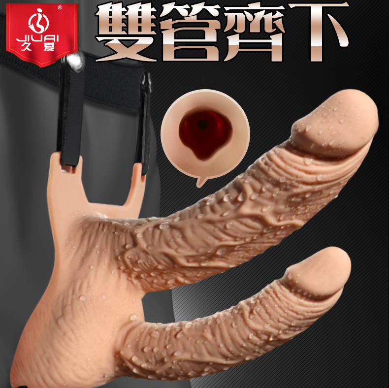 雙管齊下.逼真男女穿戴空心老二棒(膚色)震動款