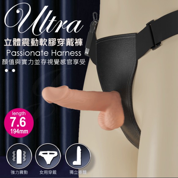 【BAILE】Ultra Harness 圓潤Q彈微調震動穿戴逼真按摩棒-7.6吋