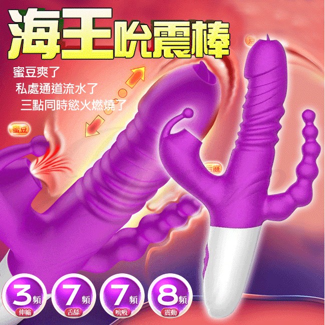 海王 四點刺激伸縮吮震USB充電矽膠三叉按摩棒