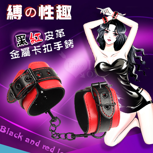【缚の性趣】黑紅皮革金屬卡扣手銬