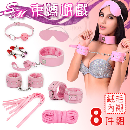 SM 束縛遊戲‧極限性愛調教 毛絨道具8件組﹝粉/黑/紅/紫﹞