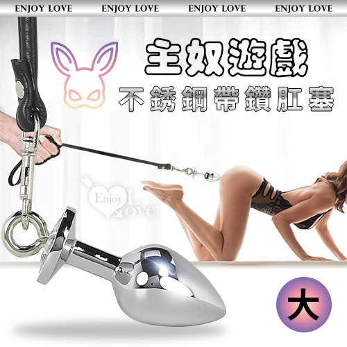 SM 主奴遊戲 ‧ 不銹鋼金屬拉環帶鑽肛塞+120公分牽引繩﹝大﹞