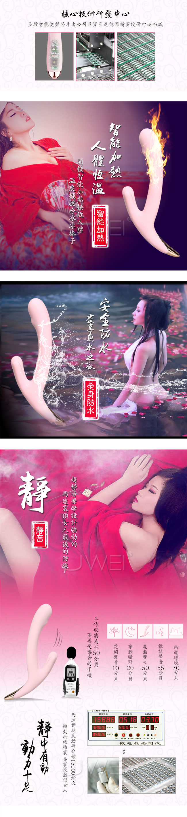 古有陽玉莖,今有鹿無雙觸碰女性靈魂深處的欲望~強力8段變頻智能雙馬達,棒身進入時陰道頭部凸點貼緊陰道壁和G點,小頭則刺激陰蒂及周圍敏感地帶頂震花蕊引爆潮吹雙重高潮!還擁智能加溫功能加熱至最接近人體溫度,擺脫冷冰冰的棒子人性化溫度~而棒身則採用柔軟親膚矽膠材質,讓您使用的安心觸感絲滑濕潤如肌膚般。