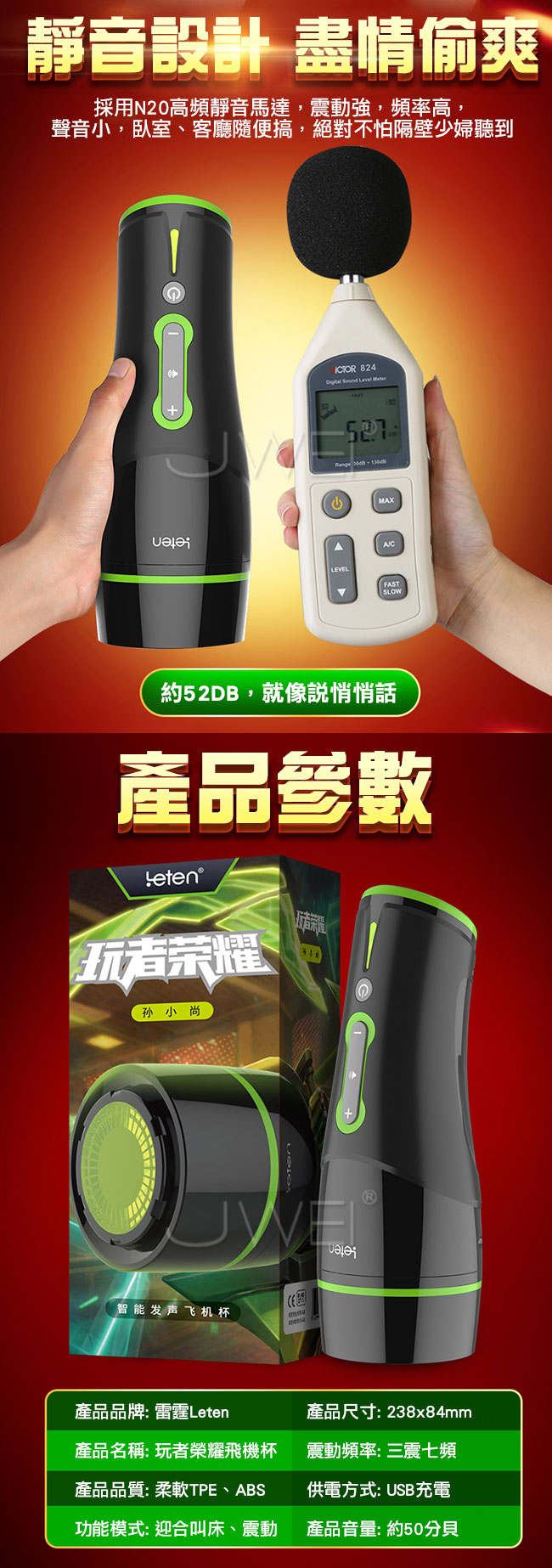 ►您現在的位置:首頁>Leten.玩者榮耀 全自動3檔7頻智能叫床互動飛機杯-孫小尚