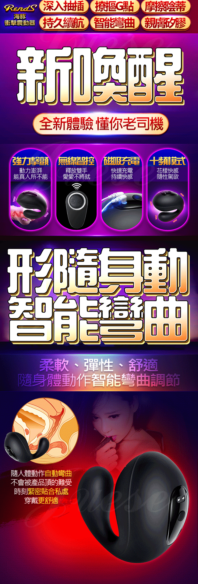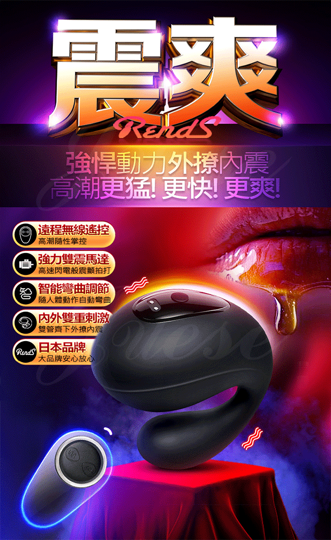 | RENDS-海豚 10段變頻黑色衝擊摳G撩蒂遙控震動跳蛋