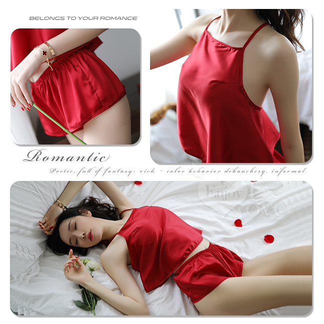 | 典雅迷情!仿肚兜設計後背交叉兩件式情趣睡衣﹝紅﹞