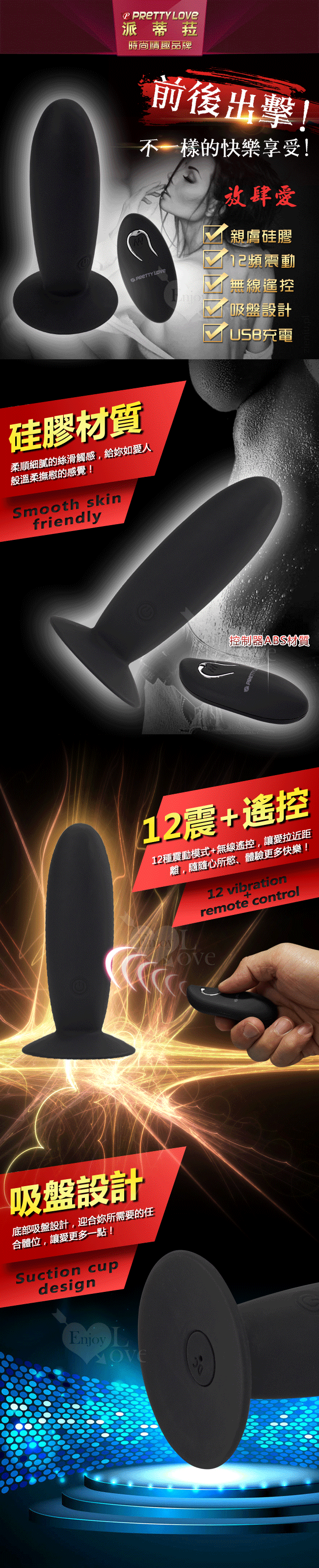 ►您現在的位置:首頁>PRETTY LOVE 派蒂菈‧前後雙用吸盤防水強震棒﹝無線遙控+12頻震動+充電﹞