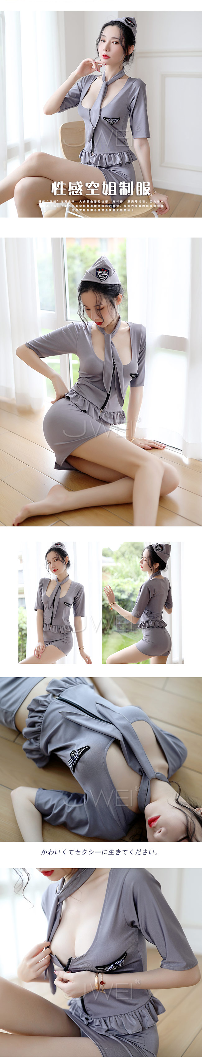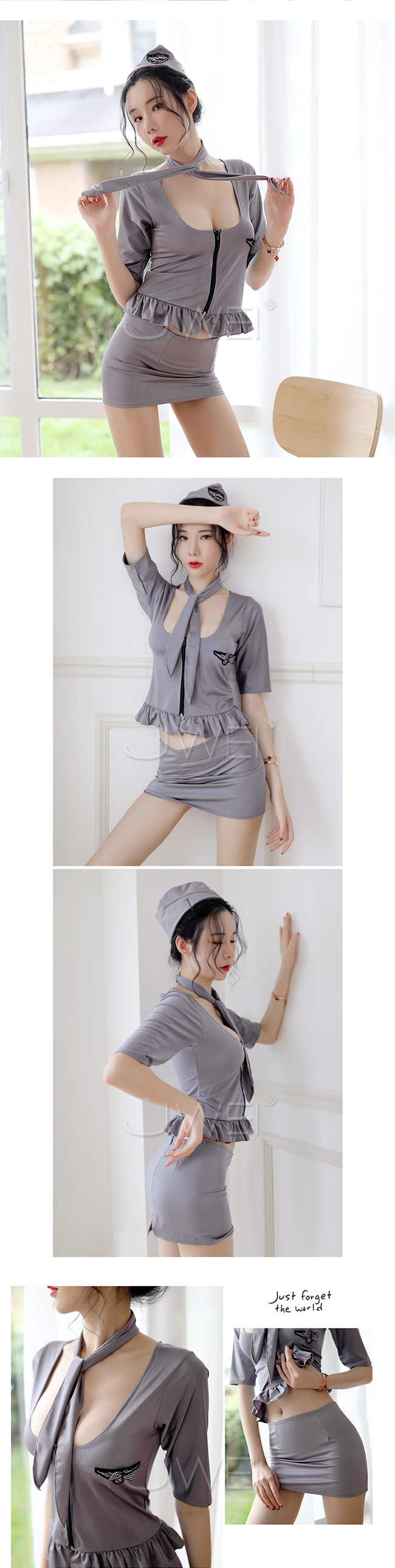 分體式空姐套裝搭配花邊點綴,露出女人性感曲線,