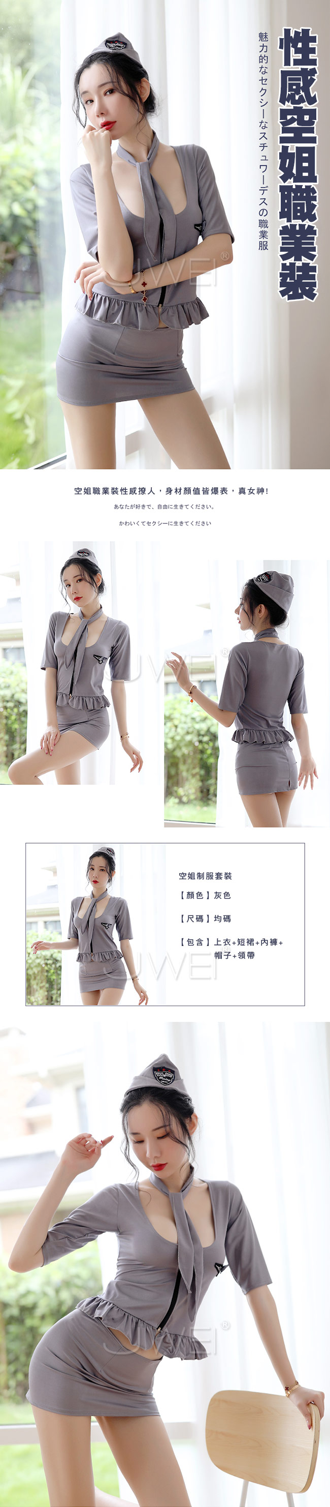 ◇◆空運愛情.性感包臀短裙分體式空姐套裝五件組◆◇