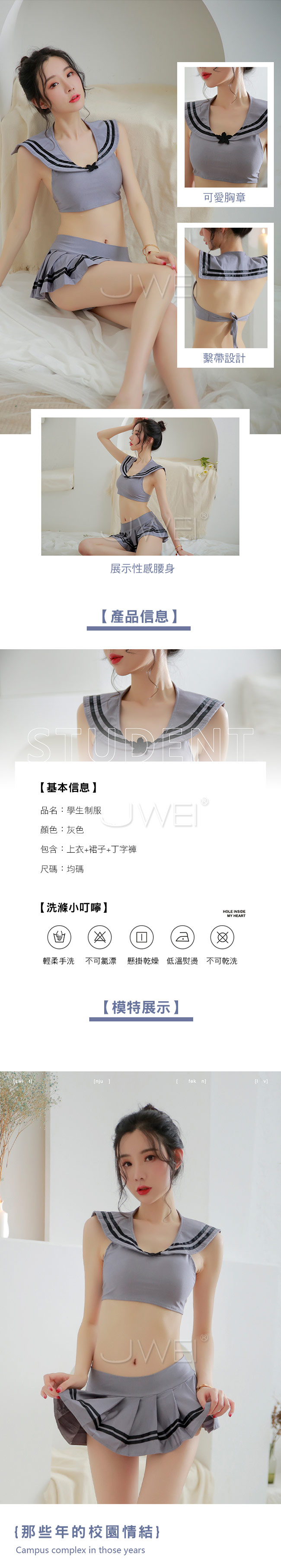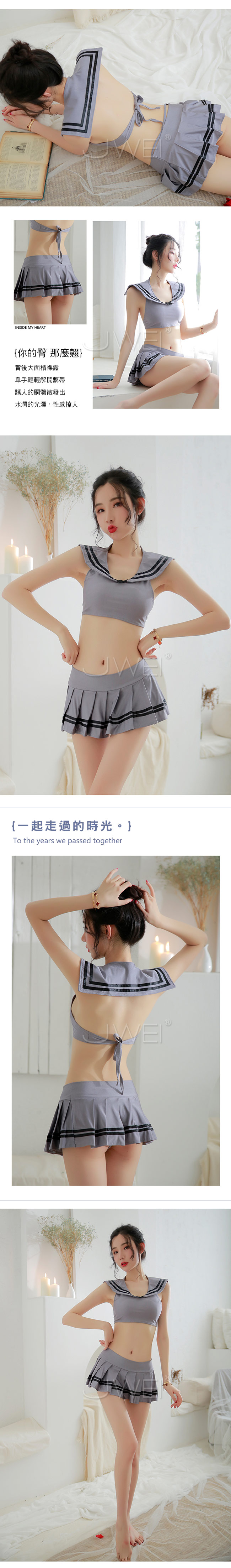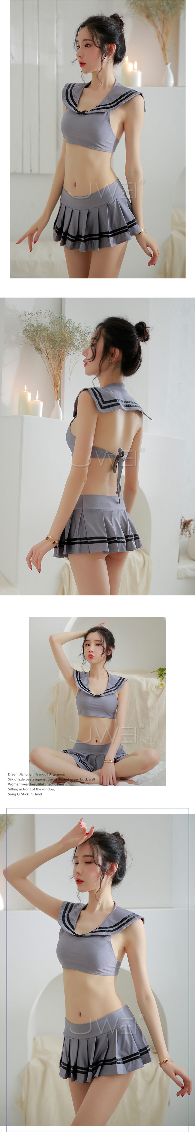 分體式學生水手服上衣,露出女人性感曲線,