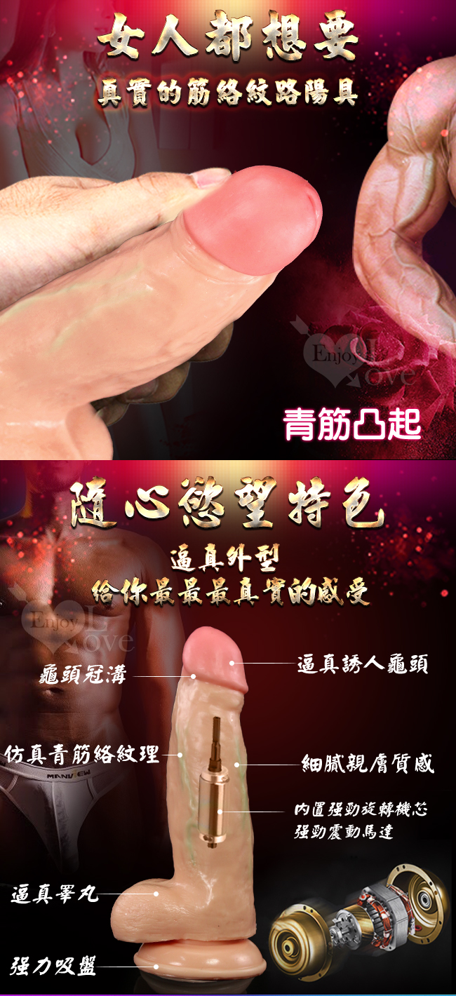 催花高手 - 逼真老二按摩棒擁有逼真的外表,採用柔軟矽膠讓您感受猶如真人般的體驗。共10種段速旋轉變頻強勁震力任您選擇,360度狂攪蜜穴瞬間達到高潮欲罷不能。
