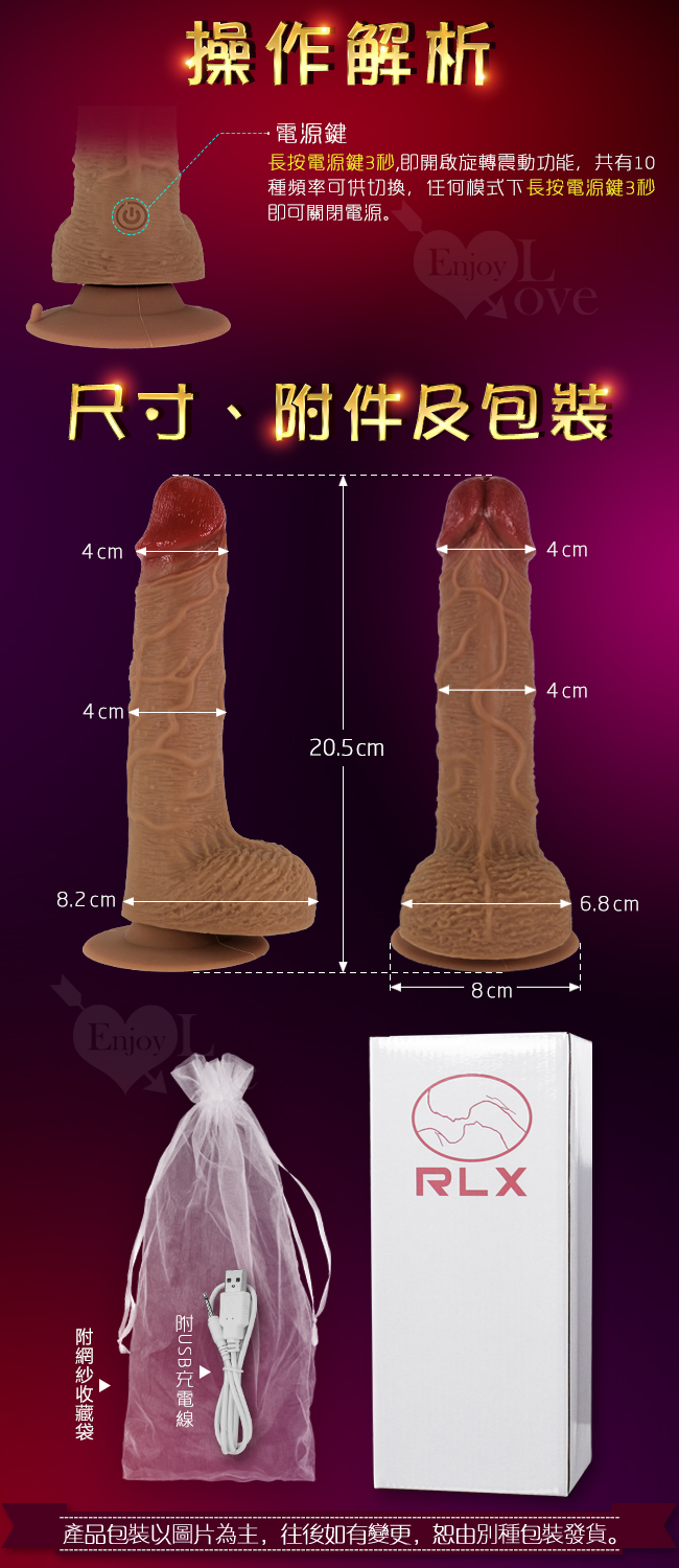 ►您現在的位置:首頁>滿2000元贈品 RLX 猛龍 ‧ 10段變頻液態硅膠肉感逼真老二棒﹝旋轉蠕動+龜頭強震+USB充電﹞大