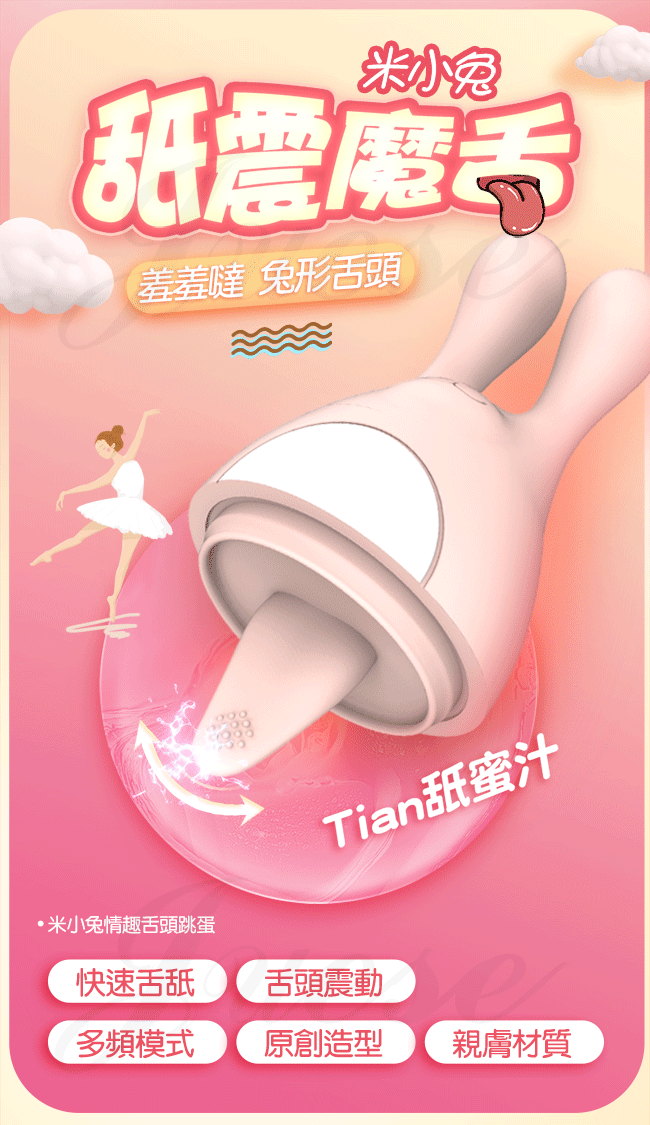 米小兔 10段變頻舌舔震動矽膠按摩器-粉色