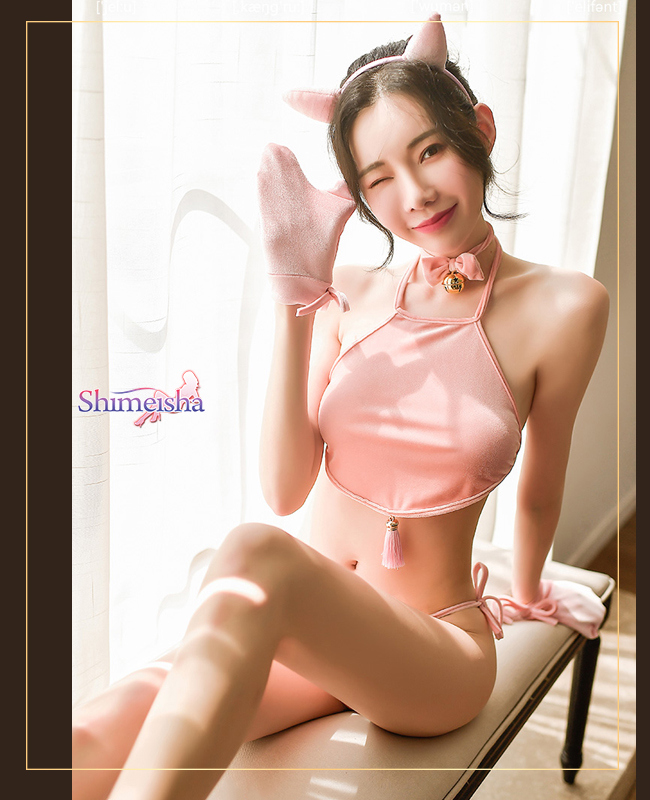 ►您現在的位置:首頁>粉嫩騷小豬角色扮演服!綁帶式肚兜鈴鐺五件式套裝