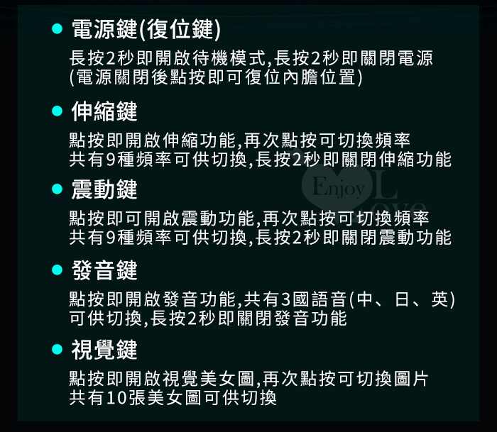 1.購買本站情趣用品之消費者均享有商品到貨三天(包含假日)鑑賞期之權益(※鑑賞期非試用期),部分商品因代理關係,無法接受換貨服務。
