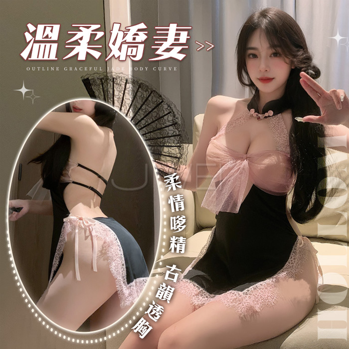 ►您現在的位置:首頁>玉蝶戀花.透明蕾絲蝴蝶繡花繫帶旗袍套裝-黑色/白色/酒紅色