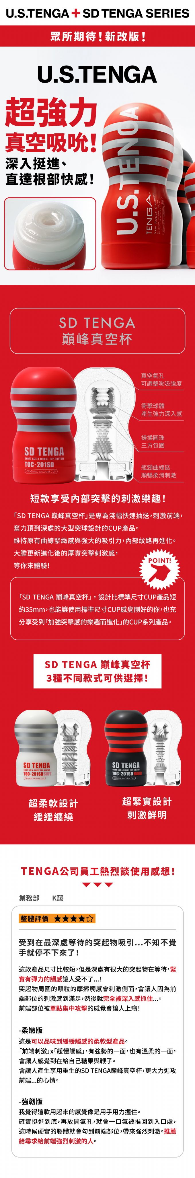 「SD TENGA巔峰真空杯」是專為淺幅快速抽送,刺激前端,奮力頂到深處的大型突球設計的CUP產品。