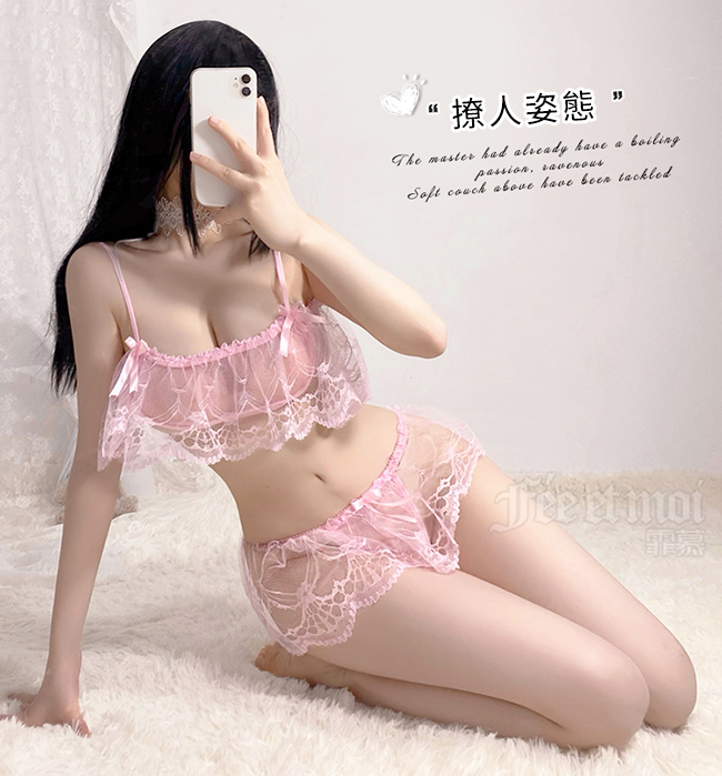 ►您現在的位置:首頁>情趣睡衣!花邊蕾絲透視裹胸後綁帶上衣裙襬丁字褲兩件組