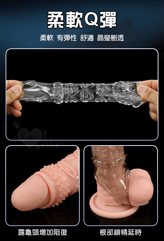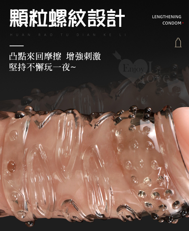 ►您現在的位置:首頁>Enjoy Love ‧ 久戰加強 顆粒螺紋刺激 增粗延時助性鎖精水晶套 - 肉感膚質﹝透明黑﹞