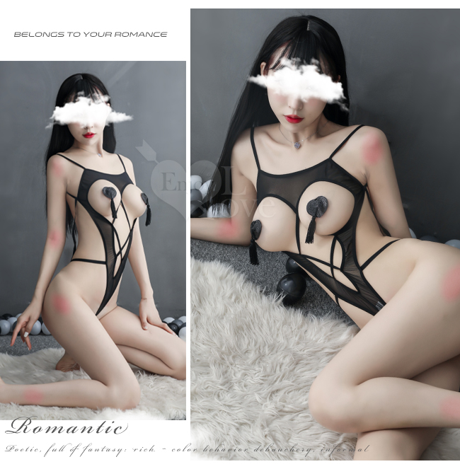 ►您現在的位置:首頁>《 Enjoy Love 》情趣連身衣!美胸爆乳細帶交織V型露背連身衣﹝黑﹞