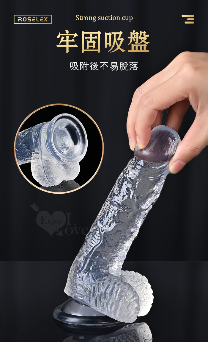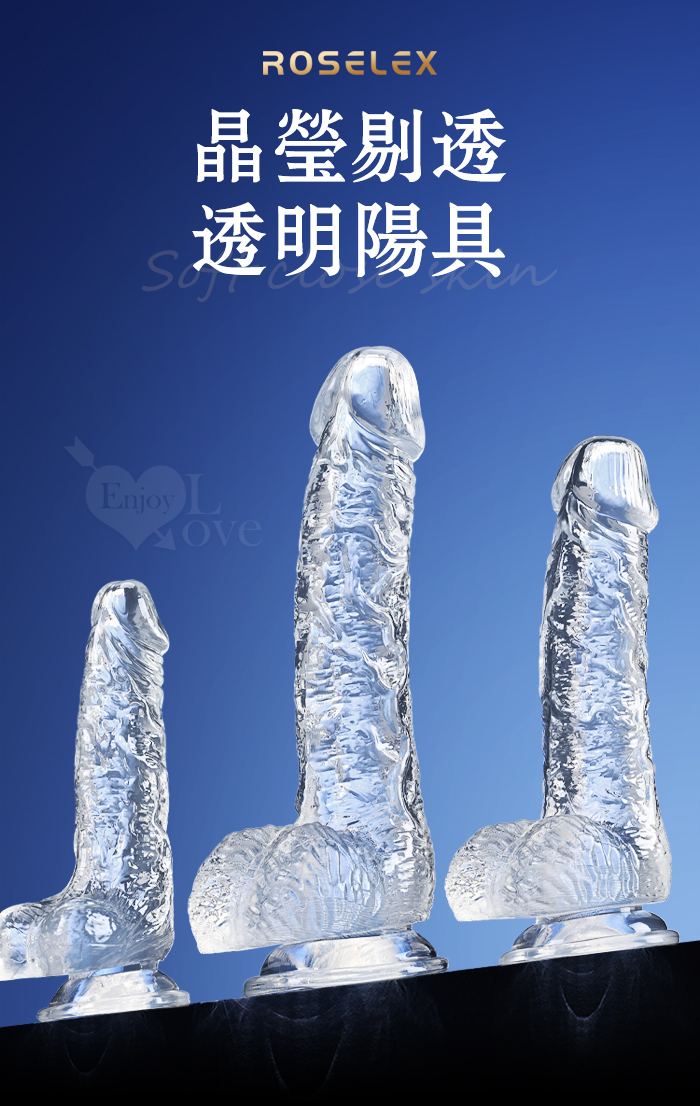 ROSELEX 勞樂斯 ‧ 不僅好看也要好用 逼真筋絡 Q韌彈軟 牢固吸盤 透明水晶老二棒﹝小﹞