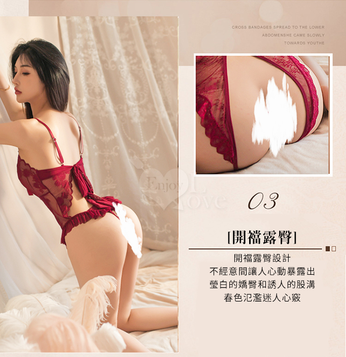 狂野連身衣!透視蕾絲前交叉鏤空後繫帶美背開襠裝﹝紅﹞