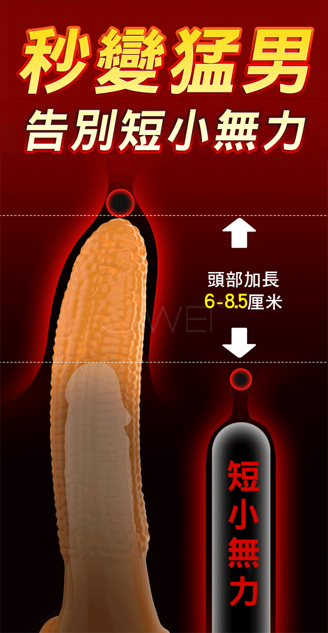 加長震動,鎖莖輸出,長時堅挺,變大變粗,整個戰鬥力狂飆!玉米款,頭部加長6公分,米粒摩擦、強勁震動、柔軟親膚,秒變猛男,告別短小無力,填滿她整個通道,實力加長直達花蕊;酥麻強震,快感洶湧噴來,女友喊不停!