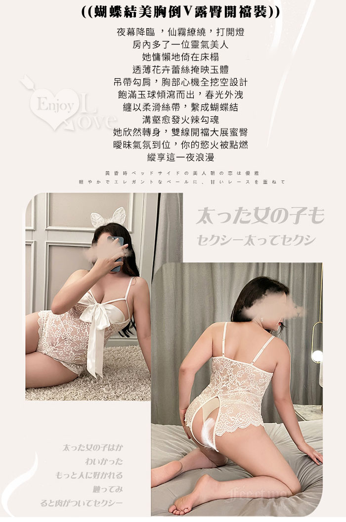 | 【棉花糖女孩】大尺碼情趣連身衣!柔滑寬帶蝴蝶結水滴雪乳蜜桃臀開襠裝