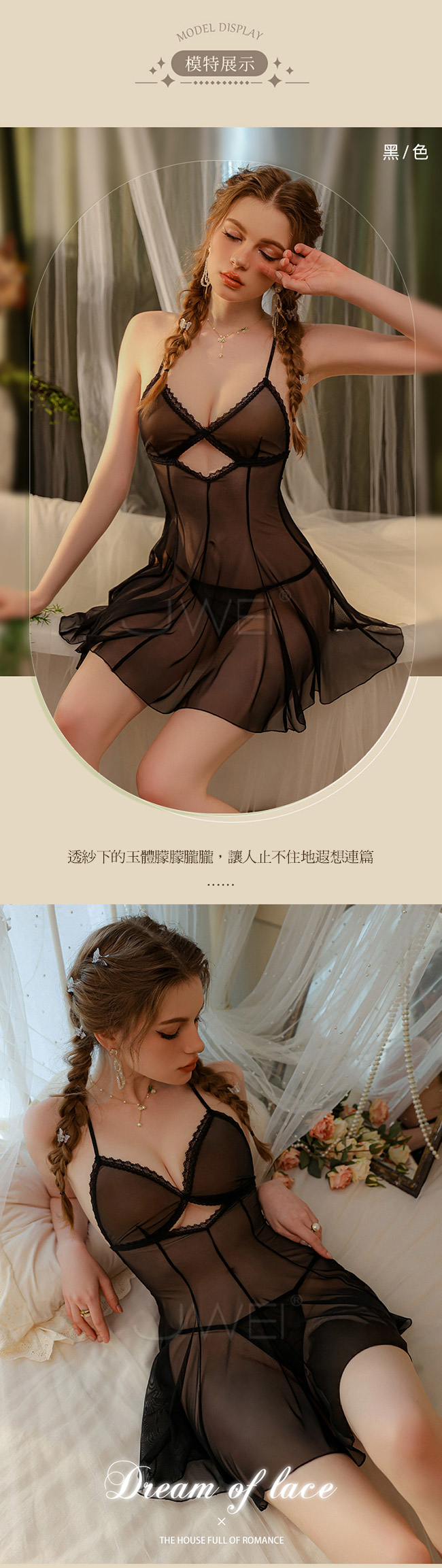 ◇◆迷離奇夢.性感透視撩撥吊帶紗裙2件組(黑色)◆◇