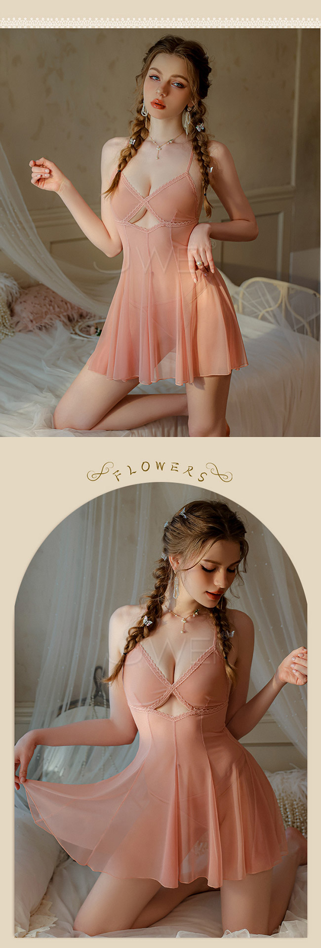 穿著一襲睡裙的她美人