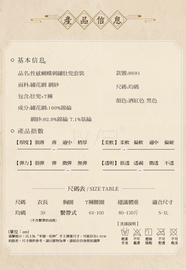 2.基於保障消費者個人衛生,情趣衣物類恕不接受退換貨,如為商品本身暇疵,接受三日內換貨,請勿試穿。