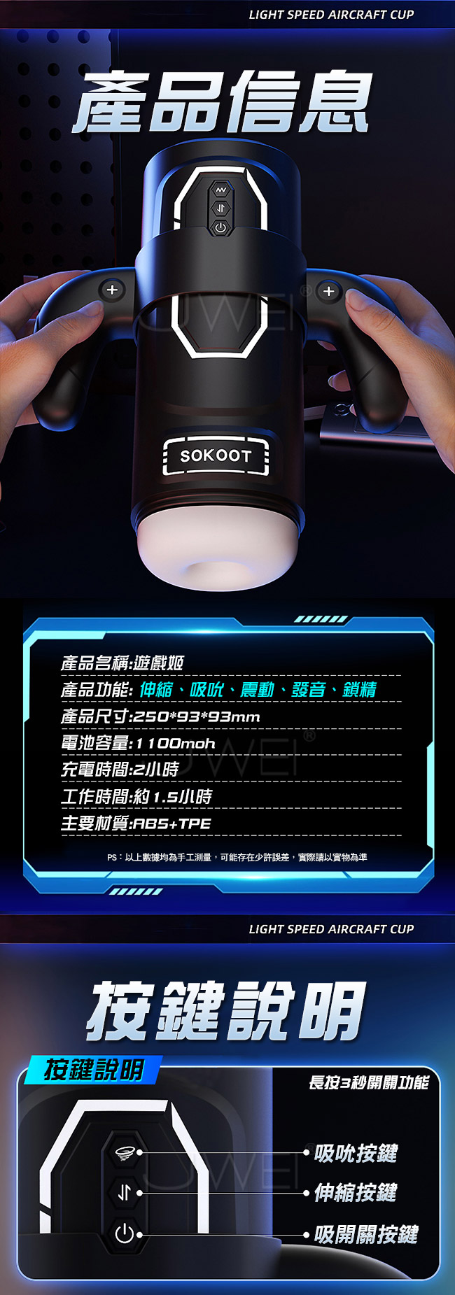 男人的快樂,遊戲手把帶來的體驗,不管是遙桿還是手把,只要男人一抓上手,情緒就會噴出來,肆意的用力奔馳帶給你更強的掌控與TA共赴雲雨;獨創通道真實包裹,內置8個鎖精環-搭配大顆粒亂蹭,越深入越緊緻,飽滿顆粒層層排列,每一次伸縮都緊緊吸住帶來刺激;肉感內膽,內膽軟膠材質的選擇上,結合上代產品客戶反應不要輕薄的膠體,不要冷硬的膠感 更不接受軟塌的觸感;智能加溫,杯蓋直插智能加溫,熱溫度直接作用在通道上加溫使用快人一步,加熱3分鐘搞定;AI真人發音,現場拾音可以邊聽邊爽,打造身臨其境現場般的沉浸體驗!