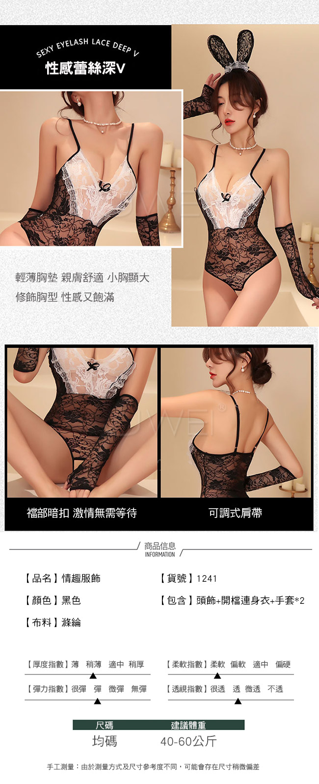 ◇◆嫵媚嬌兔.性感蕾絲深V側高叉兔女郎開襠連身衣◆◇