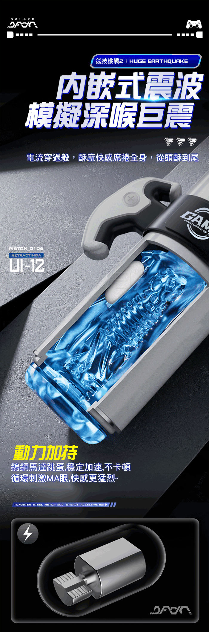 F1飛機杯,4.0遊戲手柄裝置,自動強勁伸縮,電玩式拉伸結構,靈活蠕動,覆蓋上下兩端,跨上高速抖臀,多頻伸縮玩法,勁力大動力猛,玩得爽!更多伸縮頻率等你來開啟~動力加持,鎢鋼馬達跳蛋,穩定加速,不卡頓循環刺激MA眼,快感更猛烈~多頻震動,內嵌式震波,模擬深喉巨震,電流穿過般,酥麻快感席捲全身,從頭酥到尾!仿真通道,5D立體肉粒,優質乳膠,每一次都是“初”般Q彈緊緻,可視視窗,膨脹收縮做SPA,看得見的衝擊快感,更爽更刺激!5.0智控晶片,根據男性身體需求而設定的記憶性伸縮頻率,靈活調節,快感更刺激。