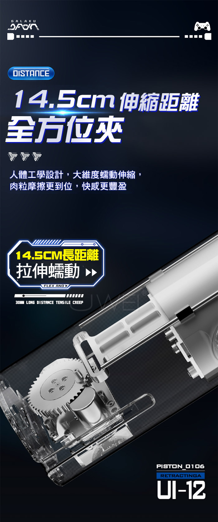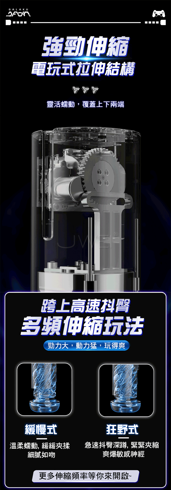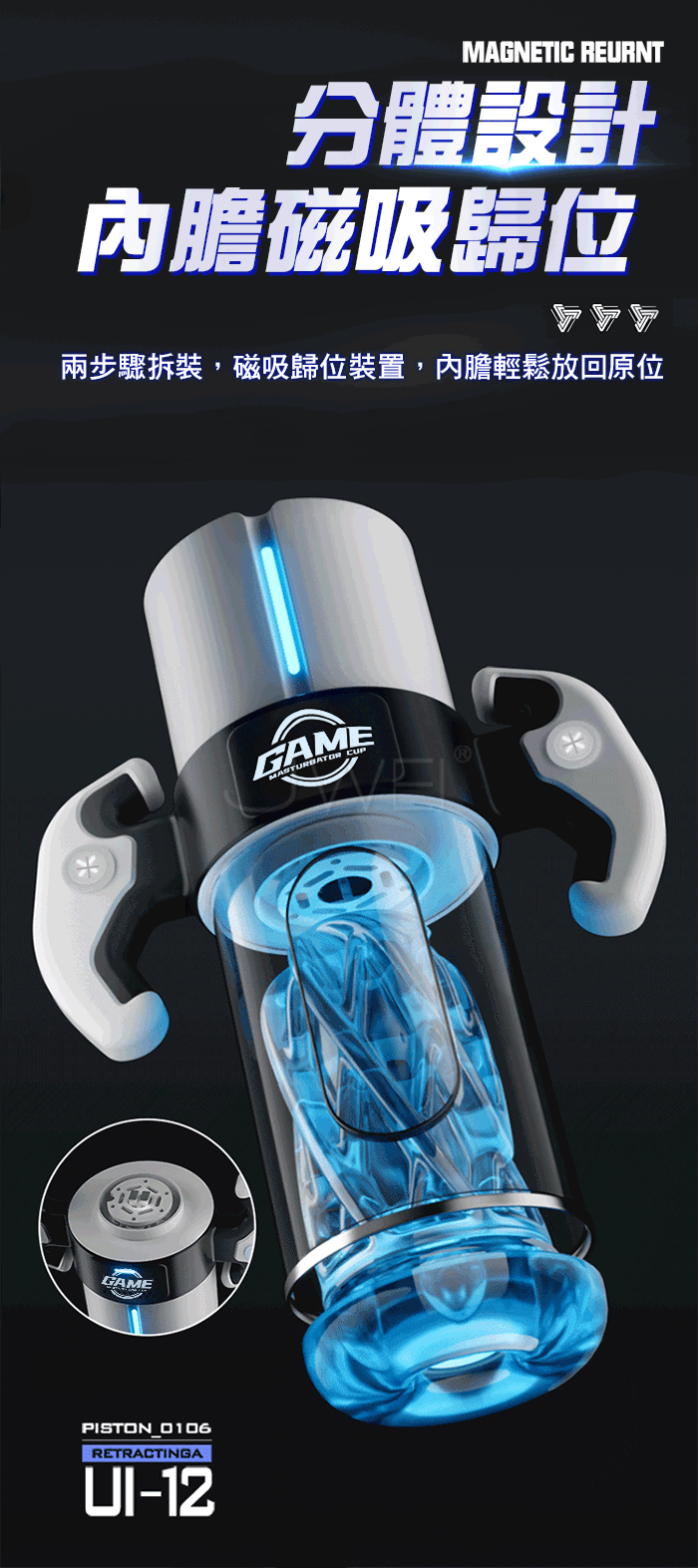 ■特色:5D立體肉粒、內膽磁吸歸位、9種頻率伸縮/震動、可拆卸遊戲手柄