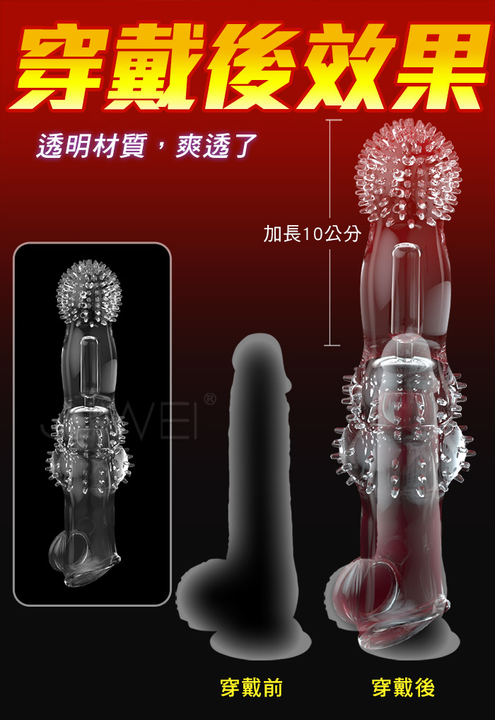 夠大才夠爽,親膚Q彈愛到難拾難分,頭部加長10公分,告別短小無力;貼合肌膚穿戴舒適,鎖精變猛男,戰場由你掌控,槍槍暴擊;加長加粗激情頂入, 直入G點,刺激環繞,夠大 夠爽 夠猛 夠刺激!