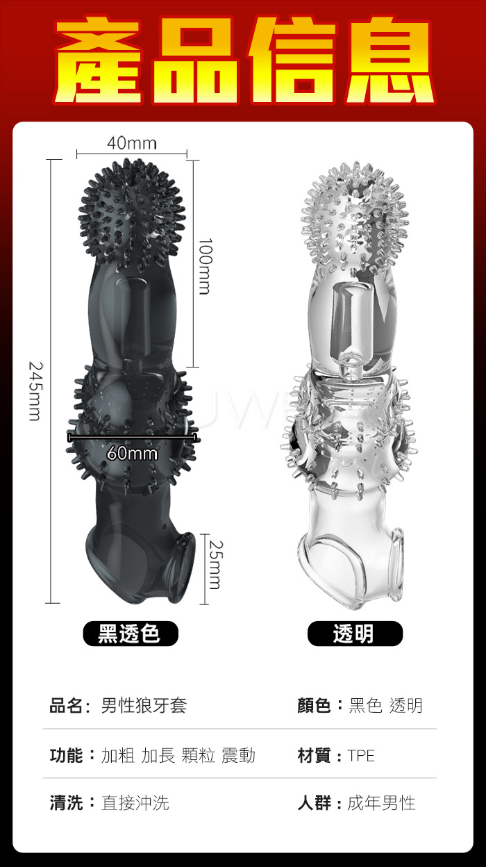 ►您現在的位置:首頁>震動BIG MAC巨無霸.直搗花心 加長10公分狼結套-透明