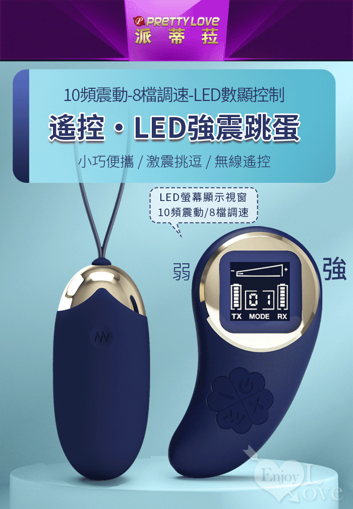 ►您現在的位置:首頁>派蒂菈 ‧ Mina 米娜 無線遙控LED顯示10頻X8速強震跳蛋-可入體式操控/40公尺長距操控﹝寶藍﹞