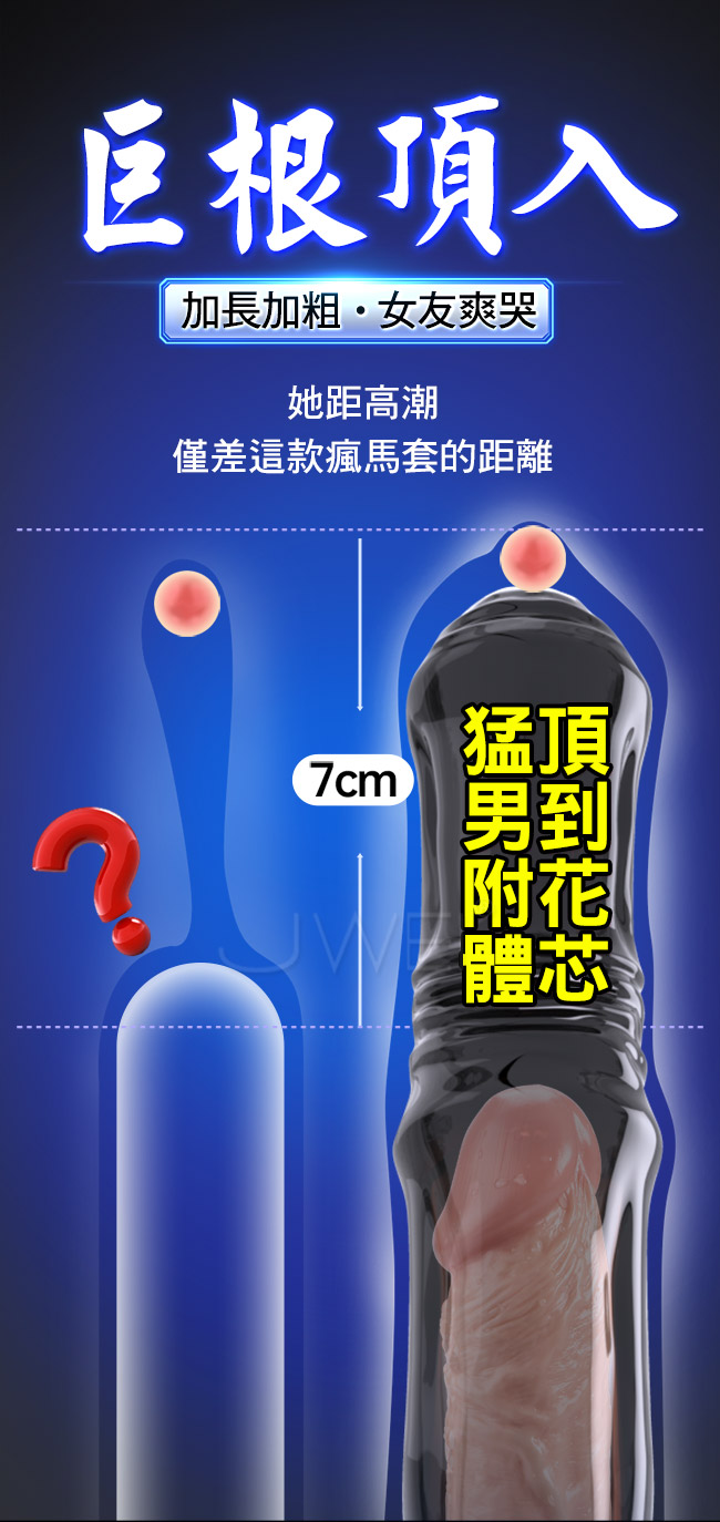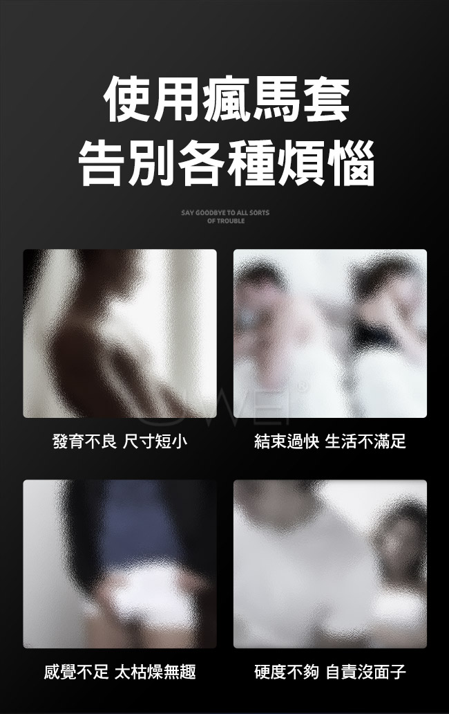 使用震動款瘋馬套,變身猛男,加長加粗,酥麻填滿整個通道,女友爽哭。實心龜頭,物理隔閡,降低敏感度物理加時,固精鎖蛋不易脫落;遞增螺紋,比真實脈絡還要強烈;柔軟舒適,在健康中體驗高潮;舒適不變形,隨意拉扯,強貼合度,鎖莖持久。