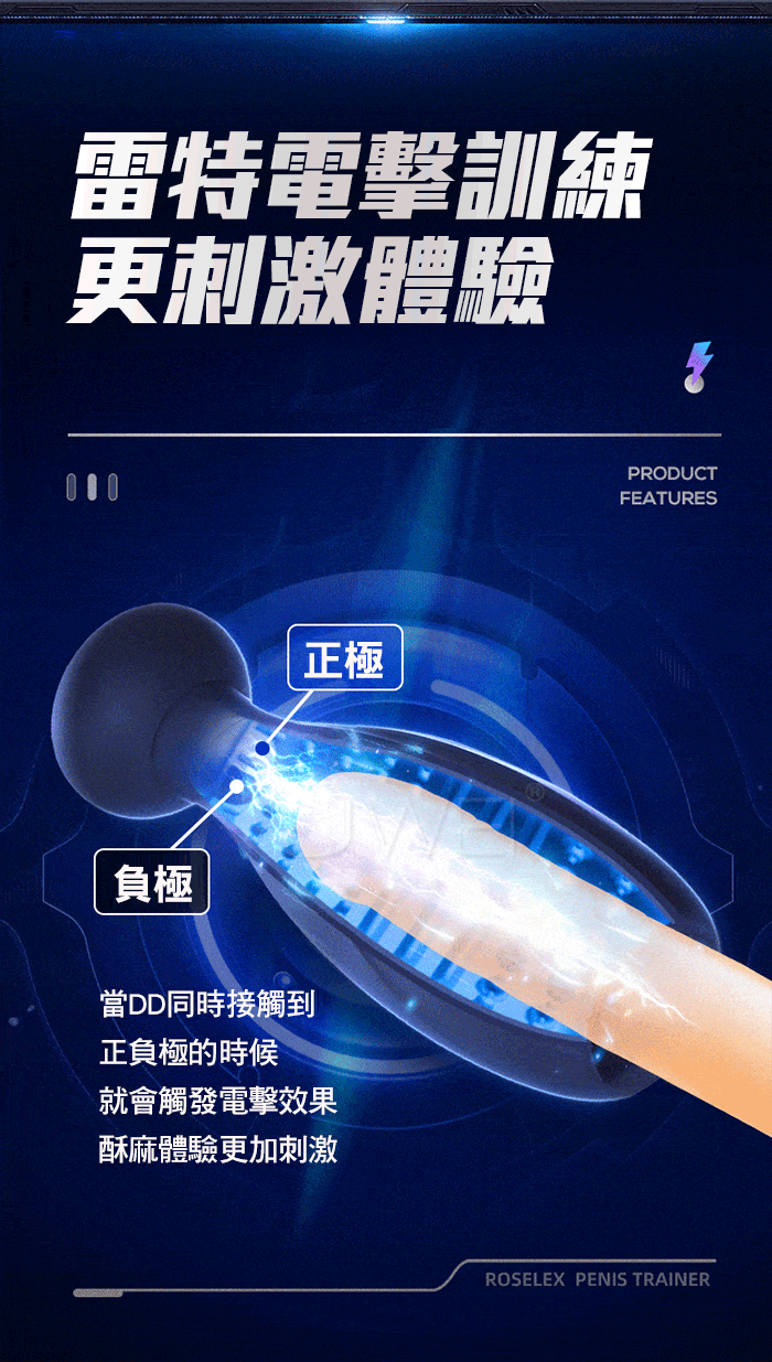 雷特電擊智能脈衝男性陰莖訓練器,智能電擊脈衝,對JJ進行旋轉冠溝 按摩,刺激冠鉤達到高潮;解鎖新玩法,刺激體驗,降低龜頭敏銳度, 高轉速電機,動力強勁,智慧晶片,AI黑科技,讓每一次收縮衝擊都恰 到好處;矽膠材質,滿足你各種強度的訓練後,依然不開裂不變形!