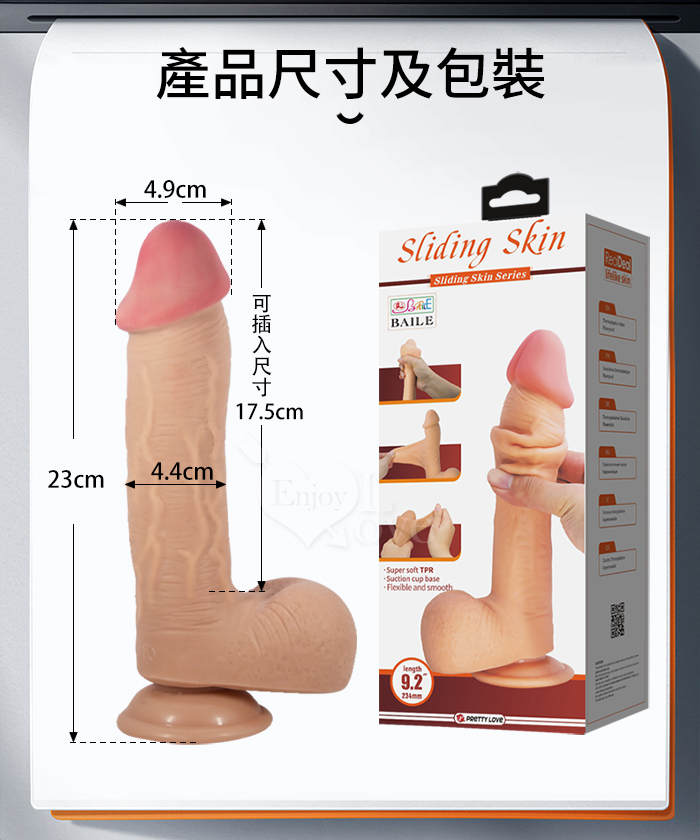 ►您現在的位置:首頁>【BAILE】EMEKA 埃梅卡 內挺外柔 9.2吋雙層滑皮工藝 仿真膚質吸盤大老二按摩棒-肉色