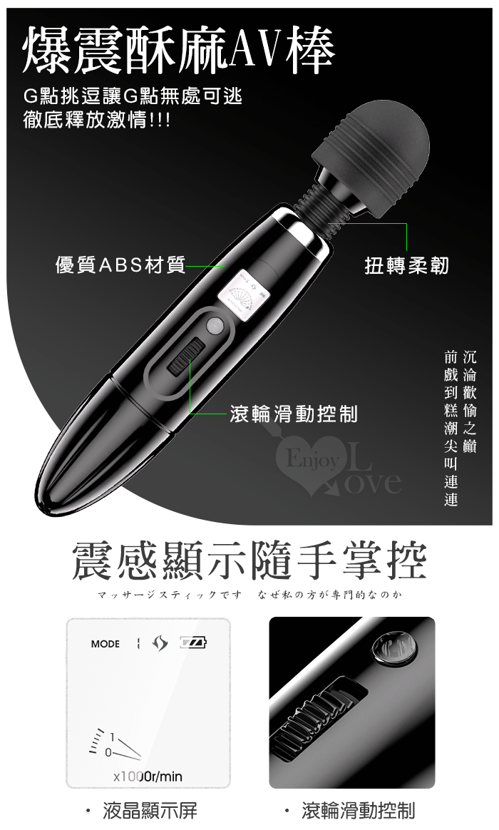 • 液晶顯示調速 • 8頻變化震動模式 • 無極強弱調控 • 強震按摩刺激 • 便捷鋰電池充電版本 • 充飽電時間約120分鐘 • 可連續使用時間約60分鐘