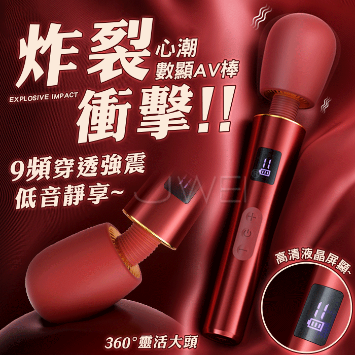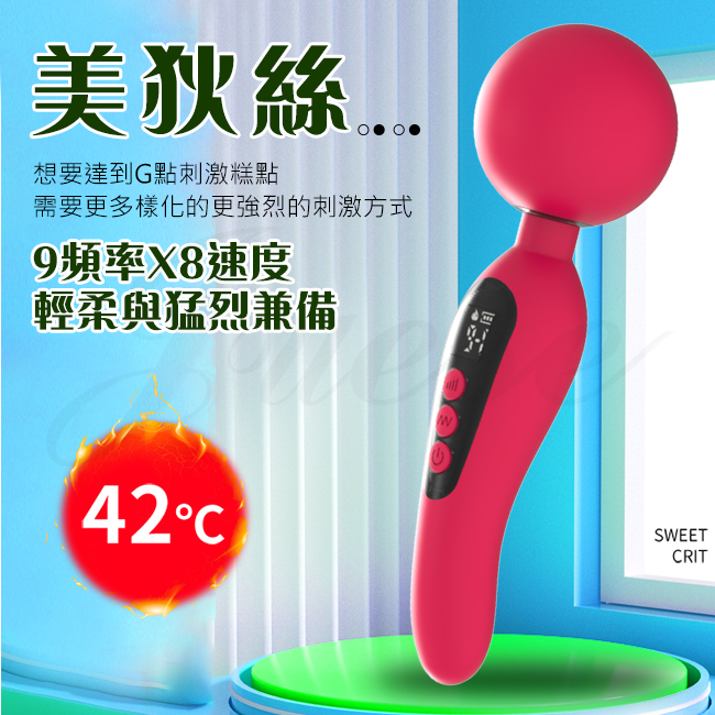 | 美狄絲 9段震動x8頻速度甜蜜暴擊液顯USB充電式加溫AV按摩棒-紅色