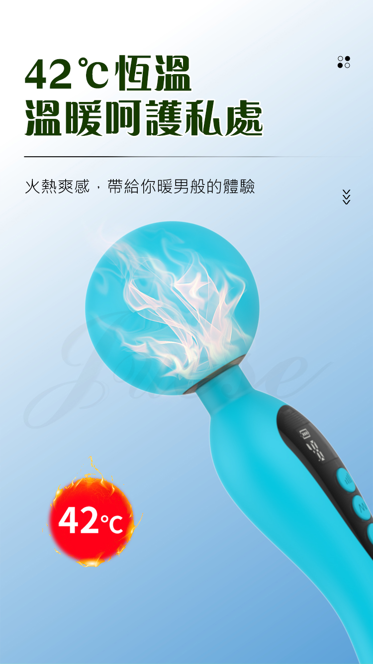 智能升溫,突波翻騰,棒頭升溫至42℃進入恆溫狀態,微高於體溫觸感,感受熱湧流動。