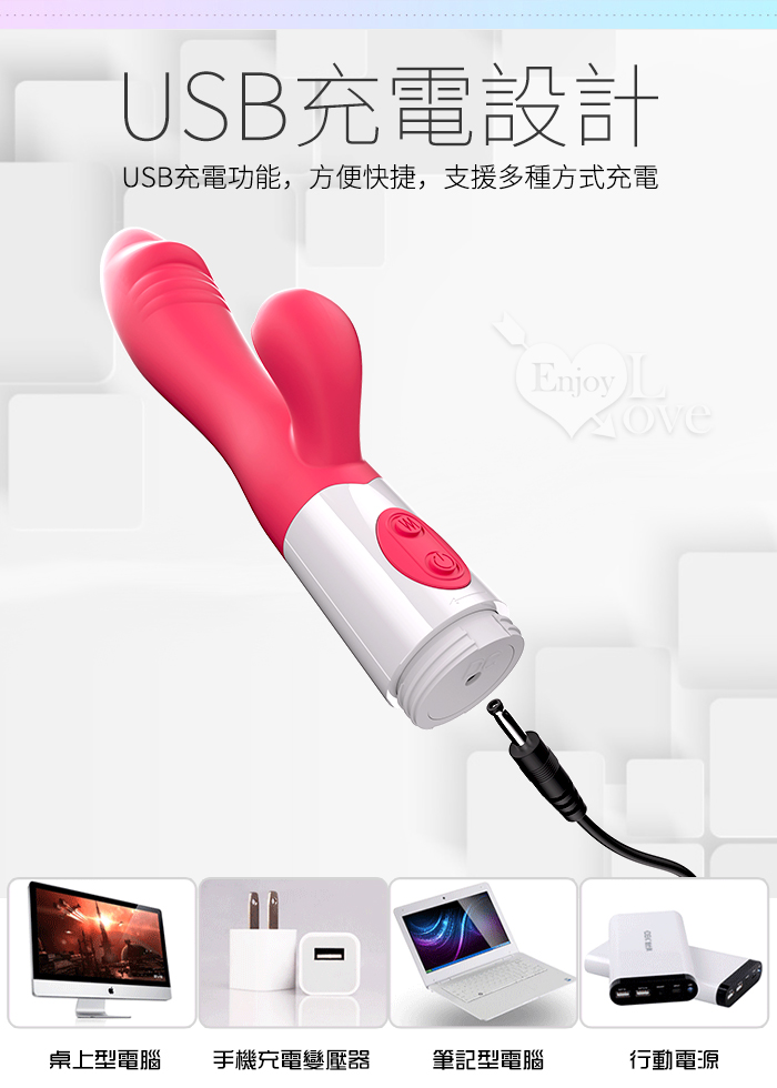 | Enjoy Love ‧ 強力雙震 內外同享 20頻電動按摩棒~充電款 - 紅