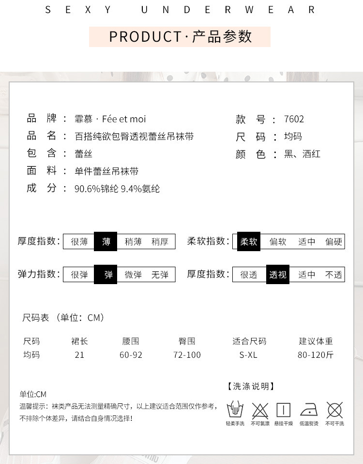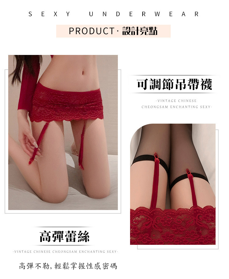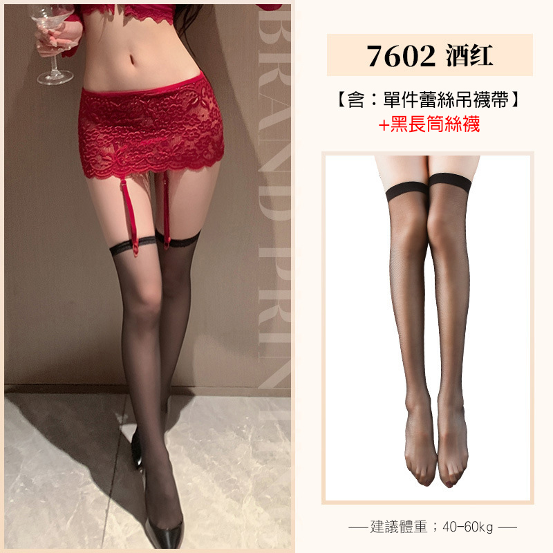 霏慕.百搭純欲包臀透視蕾絲吊襪帶+長筒絲襪