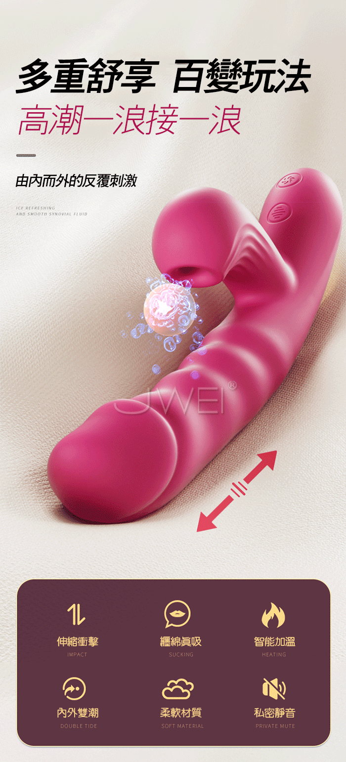 | 女神.內震外吸/十頻變速/智慧恒溫/ CG共震伸缩按摩棒 - 玫红色伸缩升級款
