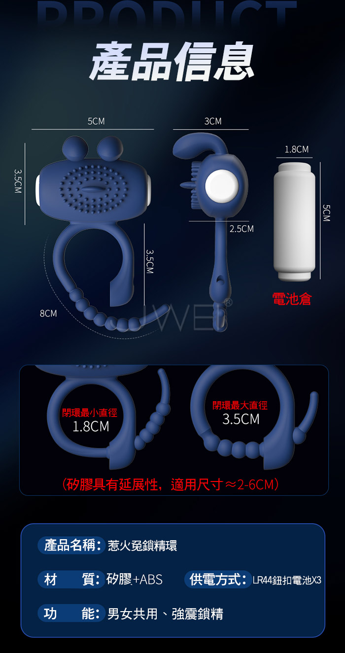 ►您現在的位置:首頁>來樂 LILO 惹火兔.雙耳多重觸擊點固精調整震動鎖精環 - 葡萄紫